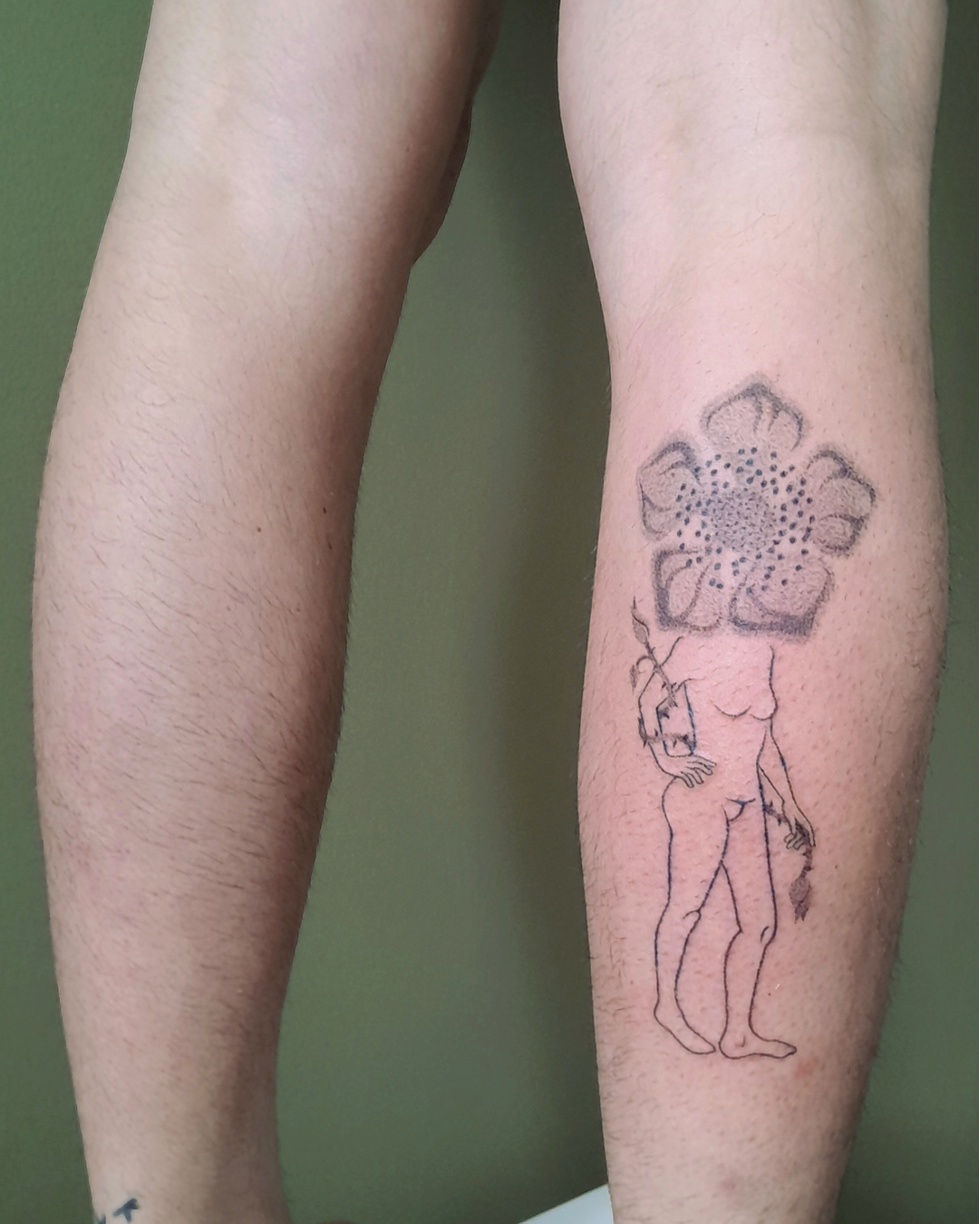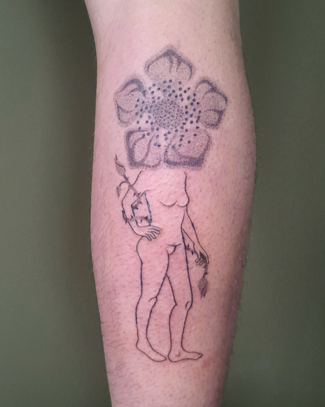 Je réalise avec plaisir votre projet seulement s'il se prête à mon style graphique et mon univers. Plutôt autour des plantes ou d’éléments naturels, symboliques, ou motifs proches de mes réalisations. Je ne tatoue pas les dessins d’autres artistes ou des dessins existants.
